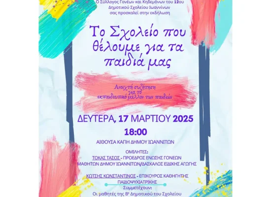 – Μαθητών/-τριών (από την Ε’ τάξη του Δημοτικού σχολείου έως και το Λύκειο)